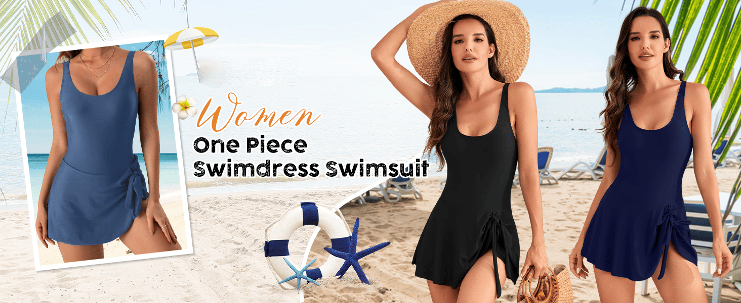 Swim dress for women tummy contorl and full coverage swimsuit bottom with side slit skirt, easy to cover your butt and show your curve. Shorts under the skirt bottom,moderate full coverage for bottom Unique style plus size one piece swimsuits with skirt make you more beautiful,fashion,sexy and elegant.